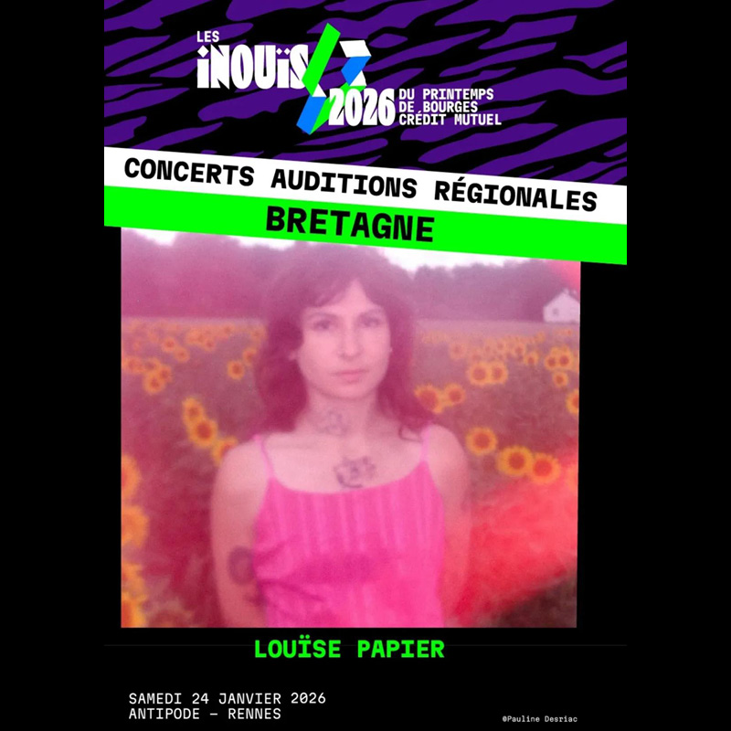 L'artiste rennaise se produira sur la scène de l'Antipode le samedi 24 janvier à Rennes dans le cadre des auditions de l'emblématique tremplin du Printemps de Bourges : Les Inouis du Printemps de Bourges.